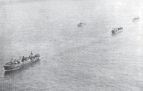 Convoy carrying Exodus 1947 passengers in English Channel, escorted by destroyers