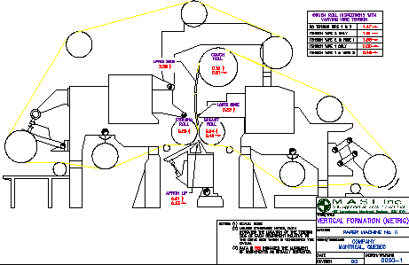 The following appendix contains general tolerances for alignment of several rolls and components of the paper machine. These are sensitive to the grade produced and the speed of the machine. In this example, a coated grade machine with speeds up to 3000 FPM was used.