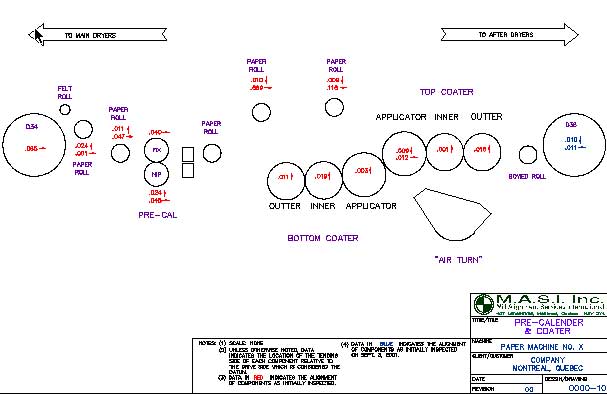 In this section, the client will find observations made by the optical team during our visit, pertaining to the machine. Also, since MASI has over 50 years of experience in the industry, we will make specific or general recommendations for any section that was inspected during our visit. MASI feels that the client deserves more than just numbers on paper and that is the purpose of this report: to let our client benefit from our experiences with similar problems found throughout our numerous visit to paper machines.