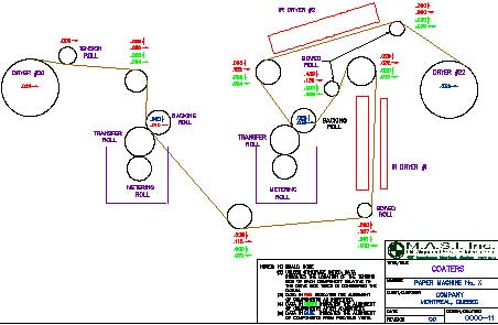 A regular size press, transfer roll coater or gate coater alignment is not to be taken lightly. Especially when you consider the fact that you are about to wet the sheet once more. If any residual stress is found in the sheet, due to web tracking problems prior to the coater, the quality of the finish product will be affected. MASI will help you ensure that the your finish product is the best, by optimizing alignment of paper rolls and coater rolls to eliminate any undue stress in the sheet.