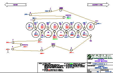 Although the dryer section appears to be straight forward, several alignment related problems can be found in this area. Amongst them you have: poor web and felt tracking, premature wear in felts, wear on gears and pinion, etc.. MASI as seen it all, let us help you in troubleshooting this area.